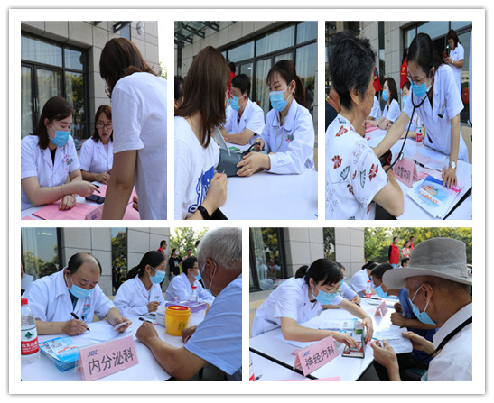 义诊现场,MILAN.COM心血管内科、中医科、内分泌科、妇科、乳腺外科、体检科、胸心外科、骨一科、神经内科9个科室14名医护人员,对企业职工进行免费测量血压、血糖、心电图等项目的检查,针对检查结果进行一对一的健康指导,耐心细致地分析他们的身体状况,根据每个人的病症进行详细记录并给予相应的诊疗建议,帮助他们查找病源,理清病因。义诊活动得到了金堆城钼业集团有限公司团委的大力支持,赢得了职工们的赞誉。