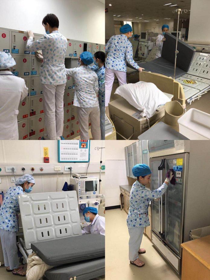 十月金秋,举国欢庆。为了能进行彻彻底底清洁整顿,透析室集合全体人员,放弃周末仅有的一天休假时间,进行科内整理。