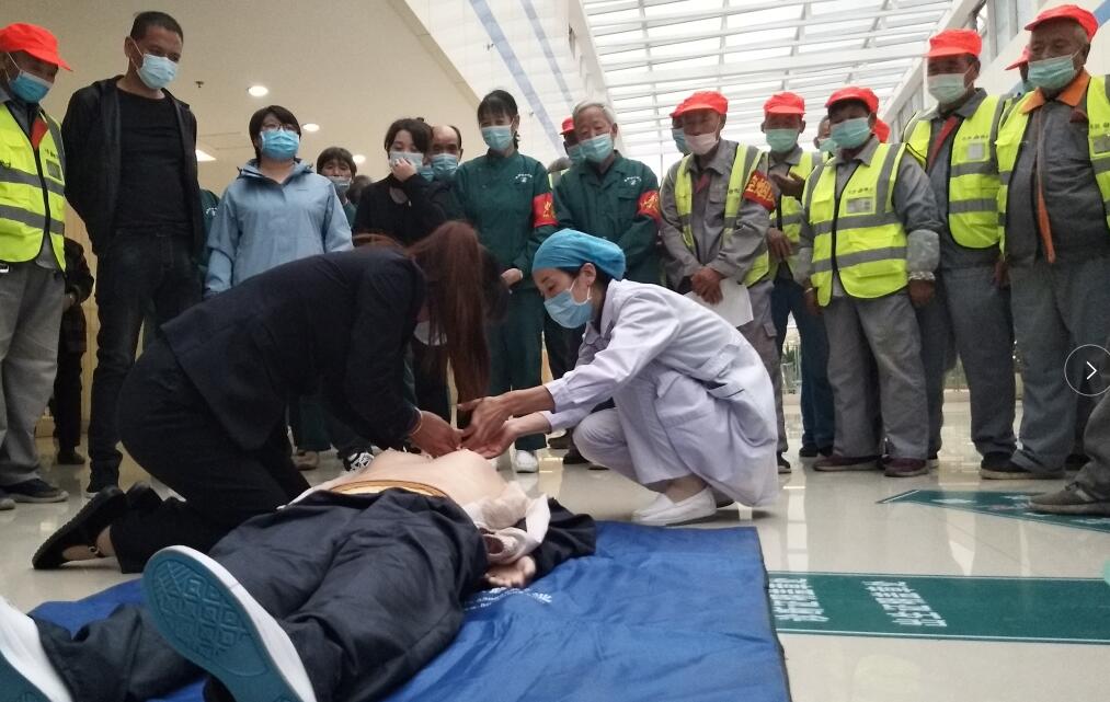主管领导张亚峰亲自督导后勤片区胸痛急救应知应会知识和心肺复苏技能培训工作,多次邀请医务科、心内科、急诊科专业人员,对后勤工作人员,尤其是巡逻队员、电梯员、保洁员进行分片分批培训,要求做到应知应会知识和心肺复苏技能培训全覆盖,做到“能识别,能呼救,能转运,会做心肺复苏”急救基本技能,人人都掌握,人人会运用。
