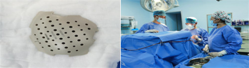 颅骨缺损往往由于颅脑外伤、脑血管疾病、颅骨骨瘤或恶性肿瘤侵袭颅骨导致,导致脑脊液动力学异常及脑血流改变,容易引起头痛、性格改变等一系列临床症状。为避免此类情况发生,尽早颅骨修补可恢复颅腔正常解剖结构。目前常用的固定材料为钛合金板,但金属材料置入有导热、排异、有伪影等缺点,且对于从事某些特殊职业会产生影响。随社会需求及材料技术的发展,无金属化的概念逐步提出,PEEK材料应运而生。其为非金属,不导热、可透视、无伪影、硬度高、能量吸收特性与骨骼的能量吸收特性相比更接近,且为嵌入式修补对头皮刺激小,可以结合3D切割技术制作材料精确还原颅骨原型,并可用于颌面和颅骨复杂部位修补,既节省手术时间,又可以精确确定切除范围并可达到满意的修补效果,最终实现了无金属化颅骨修补。