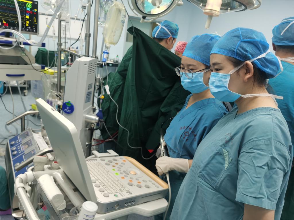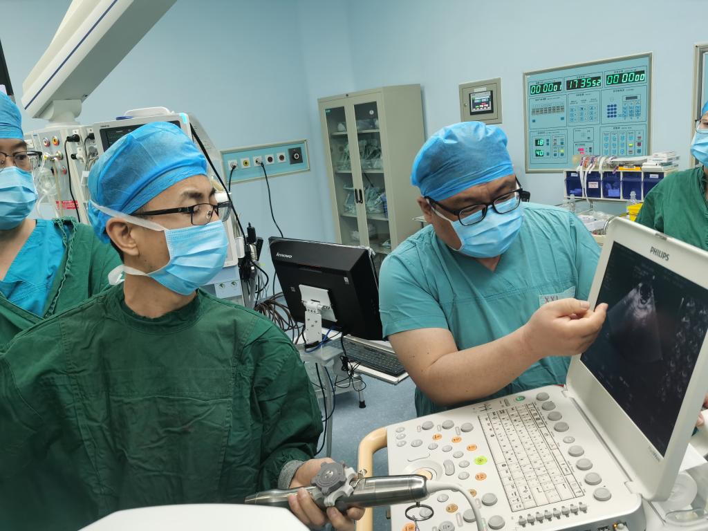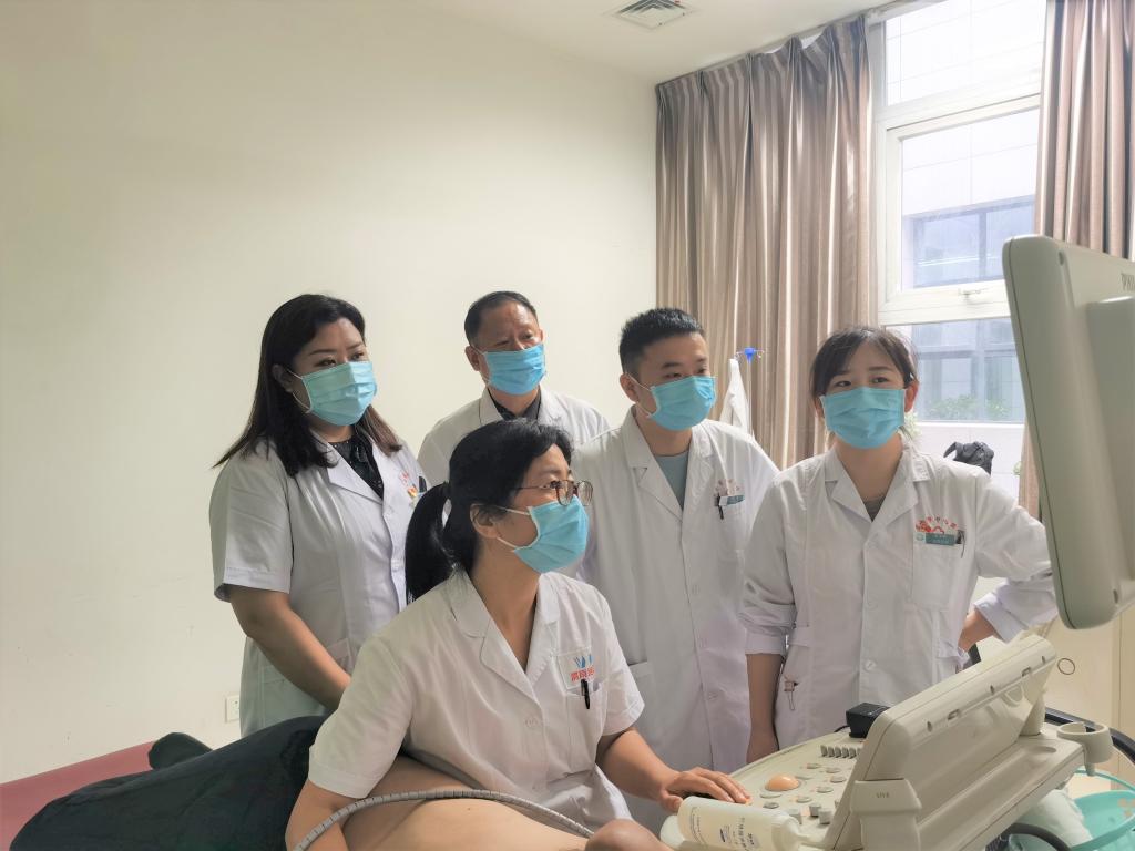 超声科多名骨干医师在术中进行引导
