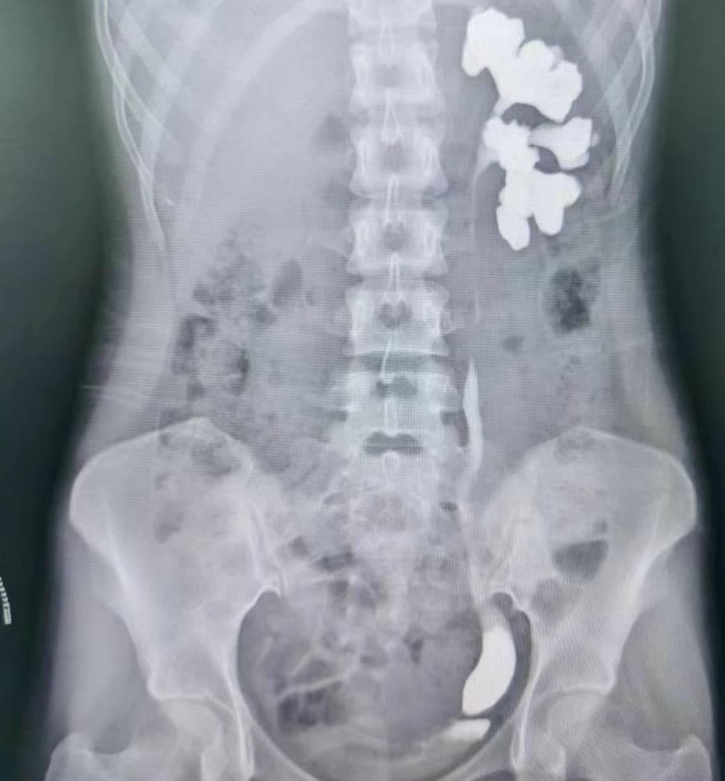 蔡高飞主任医师和王增利副主任医师诊疗组将患者收住入院,入院后行静脉肾盂造影和逆行肾虚输尿管造影提示左侧输尿管末端狭窄。科主任赵卫红立即组织全科讨论,由于输尿管下段走行毗邻髂血管和子宫动脉和卵巢、输卵管,术中稍有不慎损伤髂血管则会引起大出血,损伤子宫附件则会影响生育功能。考虑到患者年龄较小,本着手术效果和术后美观的原则,根据本科室近年来在腹腔镜手术方面的积累,决定为其实施腹腔镜下输尿管再植术,此手术方式创伤小,出血少,术中视野好,术后恢复快。