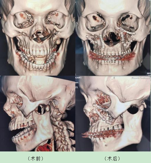 由于患者已经错过了最佳治疗时机,手术难度增加,术前需要对现有咬合进行测评,进行三维重建咬合关系,并复位骨折的眼眶壁。经过科室充分讨论和评估,于7月29日在全身麻醉下为患者进行了“陈旧性上颌骨和左侧眼眶骨骨折切开复位内固定术”。术后检查显示,患者的咬合关系基本恢复正常,眼眶下缘连续性恢复,需要微调稳定咬合关系的颌间牵引。患者对治疗效果非常满意,脸上绽放出久违的笑容,目前正处于术后康复期,即将出院。