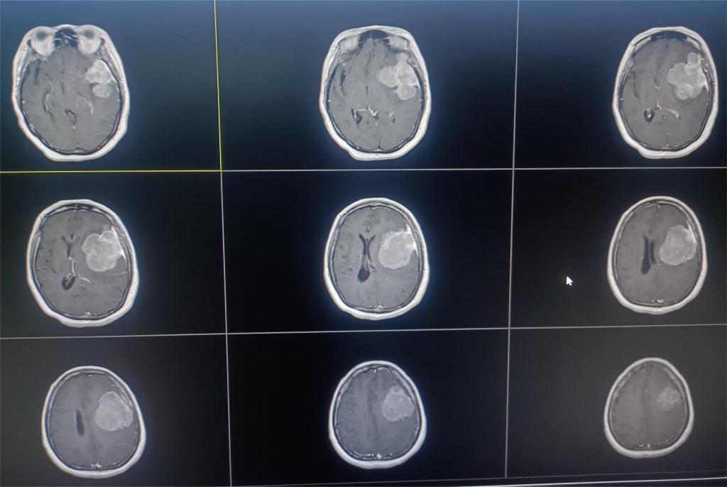 完善术前相关检查排除手术禁忌症,神经外科主任白西民高度重视,积极组织讨论治疗方案,于9月19日为患者在全麻下行左额颞占位切除术,术程顺利,历时5小时将肿瘤完整切除。