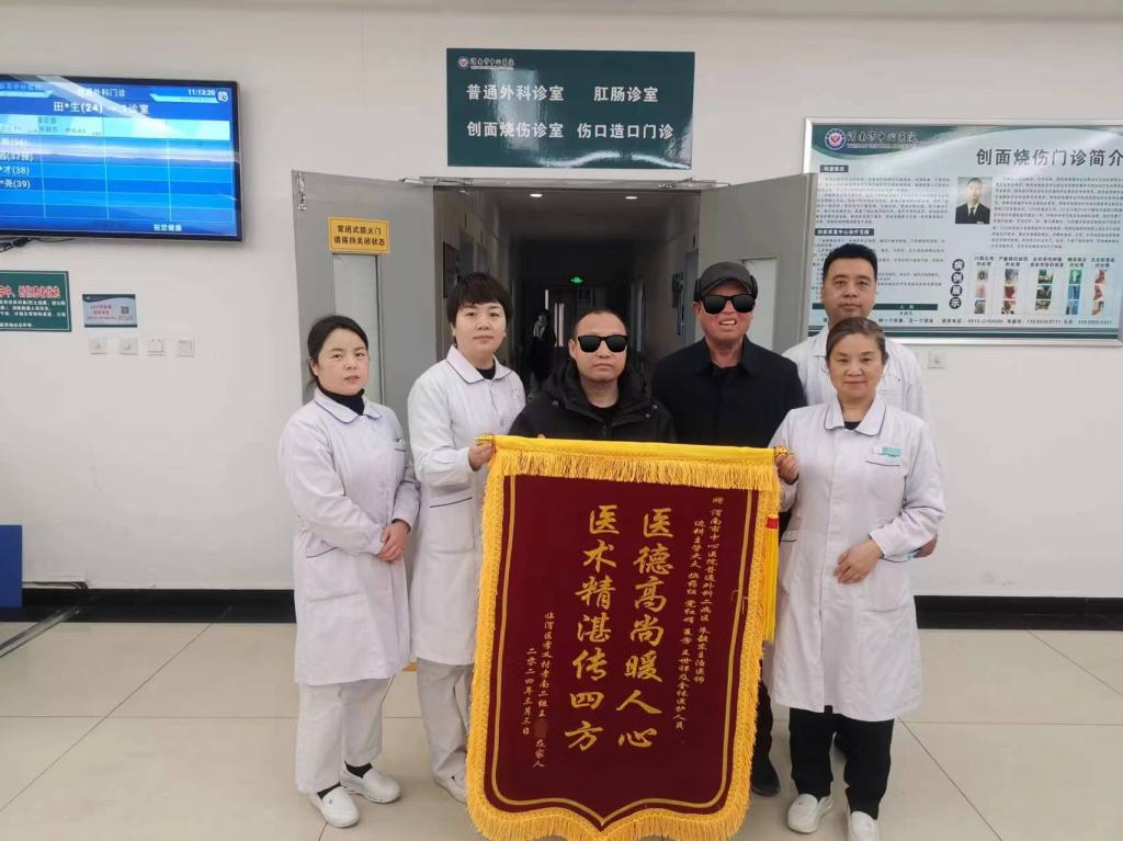 经过多次清除坏死筋膜、VSD负压吸引,进行创面植皮及对症支持治疗后,患者病情逐渐好转。出院2周后,王先生感谢普通外科二病区团队,并送上锦旗。