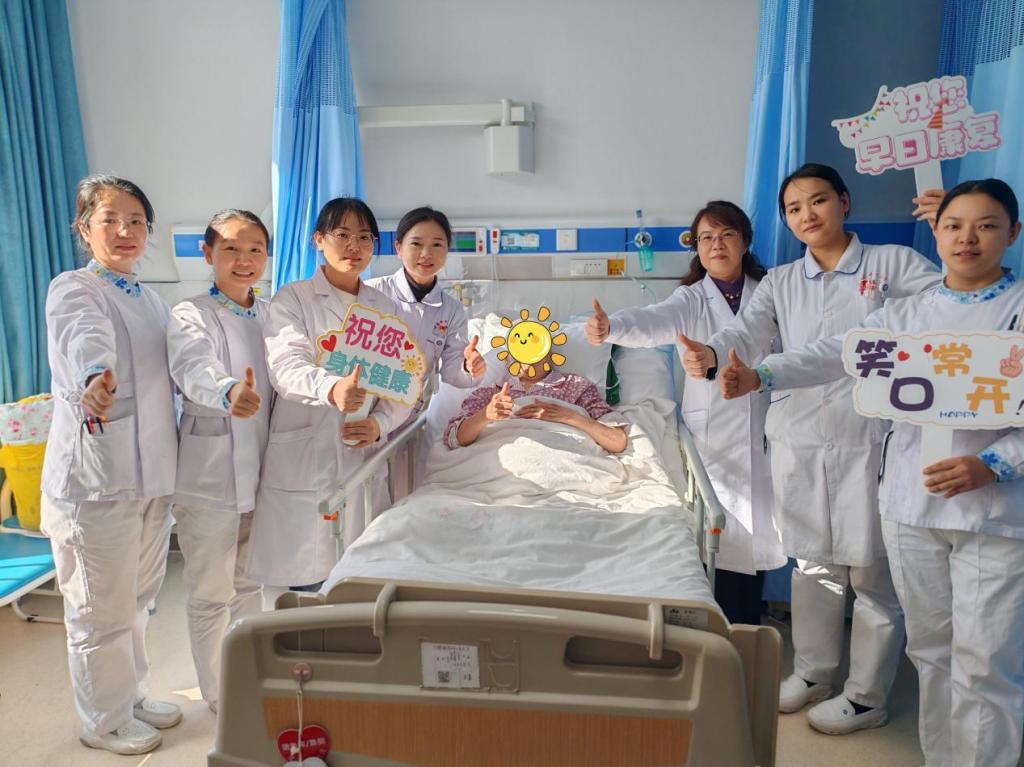 经过全科医学科医护团队夜以继日的悉心照料,曹奶奶的谵妄症状逐渐减轻。慢慢地,她能够在夜间安稳入睡,精神状态也越来越好。身体恢复后,曹奶奶不仅积极配合康复训练,还常常拉着医护人员的手,感激地说:“你们就像我的亲儿女一样,要不是你们,我这把老骨头可撑不过来。”如今,曹奶奶病情稳定下来,终于康复出院了,出院前曹奶奶用她布满沧桑的手为大家点了一个大大的赞。