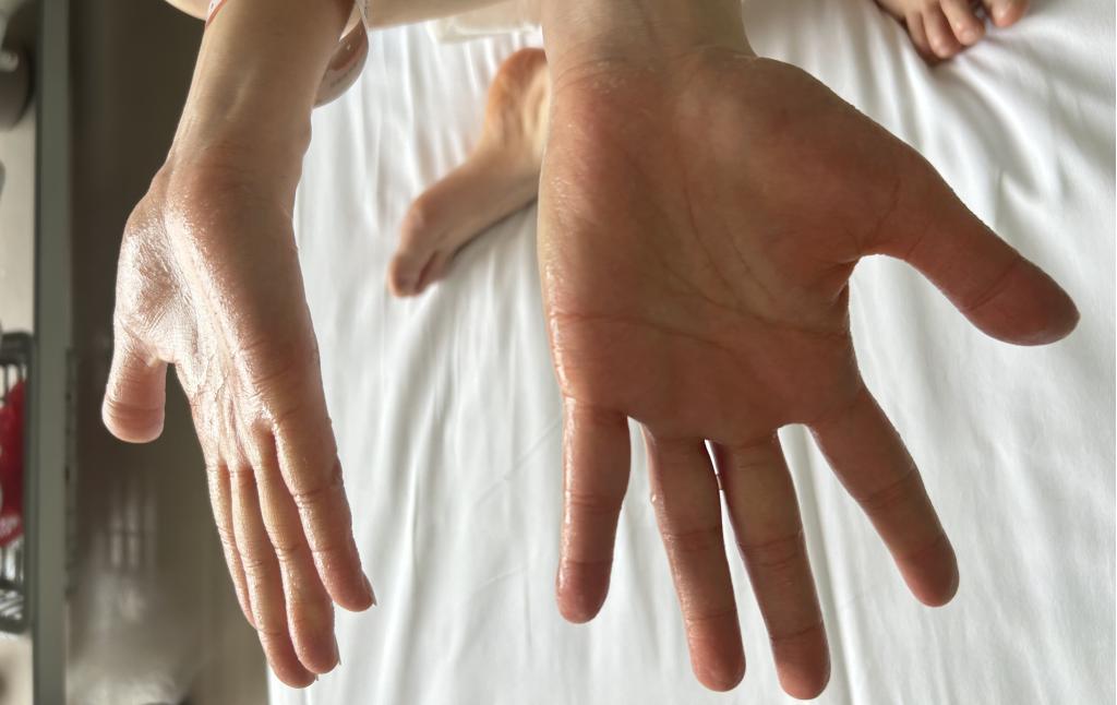 程女士自小就被双手多汗问题所困扰,无论是日常书写、使用电子设备,还是与人社交,湿漉漉的双手都带来诸多不便。情绪一紧张,汗珠更是不断滴落,这让她在工作和生活中常常陷入尴尬境地。此前,程女士尝试过多种保守治疗,但病情总是反复,效果不尽人意。