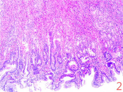 总结:自身免疫性胃炎主要见于40岁以上女性,机体产生壁细胞抗体或内因子抗体,攻击胃壁细胞,致使胃酸分泌减少,反馈性触发胃窦G细胞增生并产生大量胃泌素,刺激ECL细胞持续增生。临床上自身免疫性胃炎患者有胃酸分泌减少的表现,并伴有高胃泌素血症,同时内因子缺乏以及胃酸减少影响铁吸收,导致贫血(巨细胞性贫血或缺铁性贫血)。本例患者具有自身免疫性胃炎的病理学改变,临床特征符合自身免疫性胃炎的特点,包括:高胃泌素血症,隐性贫血。这个疾病的诊断单纯靠病理学是无法明确诊断的,需要结合实验室检查及影像学检查结果进行综合判断,因此病理医师与临床医师的交流尤为重要。治疗上主要是对症治疗,如补充铁剂、维生素B12、叶酸。目前,HP感染被认为是自身免疫性胃炎的一种原因。如果HP阳性,那么抗HP治疗是尤其重要的。此外,自身免疫性胃炎是免疫系统疾病,可能会伴随其他免疫性疾病如胃神经内分泌肿瘤、自身免疫性甲状腺炎、I型糖尿病等。