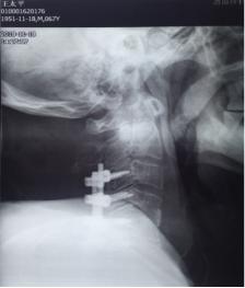 患者,王xx,男,67岁,以颈部疼痛半月,并四肢活动感觉障碍1周入院。半月前,患者因颈部疼痛,同时有发热在外院对症治疗,发热缓解后出院。颈部疼痛缓解不显著。后期患者出现颈痛加重表现,伴有四肢麻木,无力,行走困难。再次在外院颈椎MR检查后发现颈椎椎体破坏,甲状腺B超发现占位病变。给以止痛,神经营养治疗。住院期间患者出现下肢肌力的显著下降,大小便障碍。