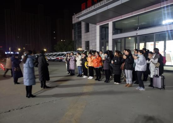 晚上11:00接到命令,天未亮,我和战友一行30多人,在院整装待发。院领导、护士长一同给我们加油,多次反复叮嘱,让我们做好自身防护,听从安排,携手努力战胜疫情。他们是我们坚强的后盾,让我们奔赴一线的决心更加坚定。