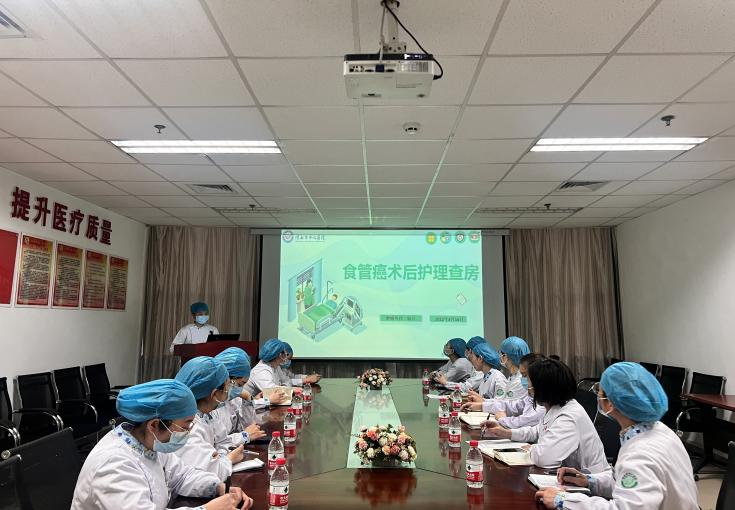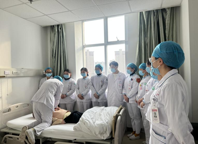 3月16日,按照护理部安排,科室为一位全腔镜下三切口食管癌根治术后患者进行护理查房。护理部辛楠、普外科护士长张少青、老年病血液科护士长陶燕燕、康复医学科副护士长刘阳以及科室护士30余人参加。
