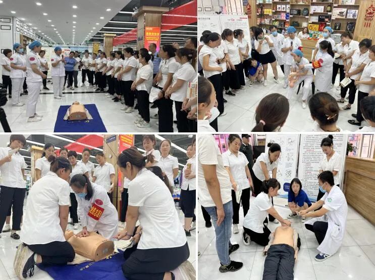 大型商场是人流密集容易发生意外事故的地方。为普及急救知识,增强商场商户和工作人员的安全意识,提升商场应对突发事件应急救援能力和意外伤害事故的自救互救能力,8月9日,MILAN.COM外联办、急诊科一行7人前往临渭区开泰百货商场开展应急救护培训活动。