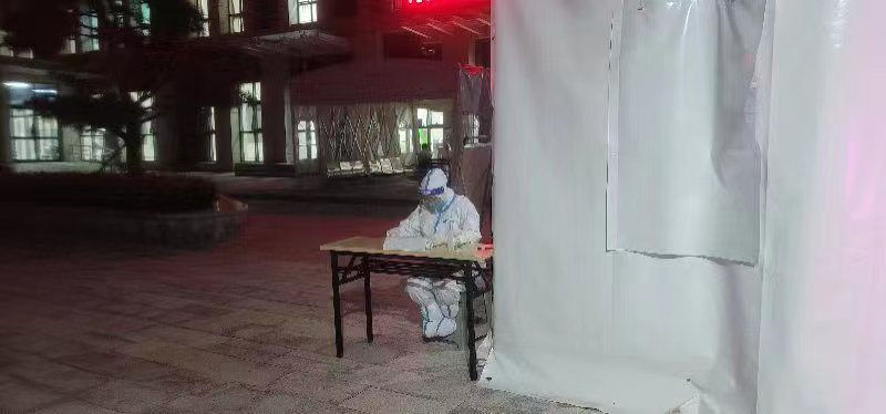 采样室的同志穿着防护服,带着双层手套精准采集核酸标本。留观室的同志认真做好隔离点、中高风险区患者管理工作,患者离开后严格落实患者所经环境及留观室终末消杀、环境采样。