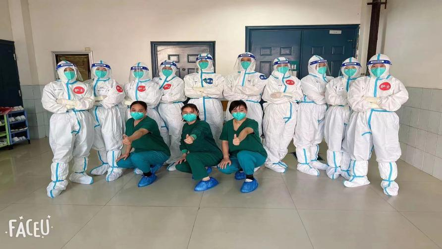 在抗疫一线,还有这样一群人冒着被感染的风险,冲锋在前,逆行而上,这就是内感护士。我们每班要对各室物表、墙面、地面、空气进行无死角的全面消杀,最危险的是收集医疗废物,整个过程不能有抖动、挤压等动作,生怕操作不当病毒迎面袭来,需要小心翼翼进行双层医疗袋鹅颈式封扎,再将一袋一袋的医疗废物装箱转移。经过几个小时忙碌,厚厚的防护服下,全身衣服早已被汗水浸湿,但大家丝毫没有一句怨言,努力为战友们创造一个安全的脱卸环境。除此之外,督导防护服脱卸流程及手卫生执行是感控工作的重中之重。要求我们不仅要有一双火眼金睛,还要有处理突发应急事件的能力。有一次,护士小李在脱防护服时,不小心将内层的一次性帽子连同带下,我见状,快速手消后用消毒湿巾帮助她擦拭暴露的头发,减少感染的风险,并协助其迅速撤离现场。类似这样的事件时有发生,内感护士一直在默默守护,做大家的坚强后盾。
