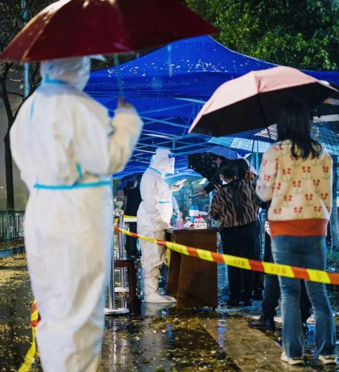 从8月19日起至今,从夏天到秋天,从酷暑难耐到秋雨连绵,医护人员常常是晴天一身汗、雨天一身泥,在核酸检测现场一站就是几个小时,腿站酸了、嗓子喊哑了。连续多日疲劳作战,所有医护人员毫无怨言,始终服务热情不灭、工作效率不减,不断在平凡岗位上传递温暖力量,精准、高效推进核酸采样工作,筑牢抗击疫情的铜墙铁壁。