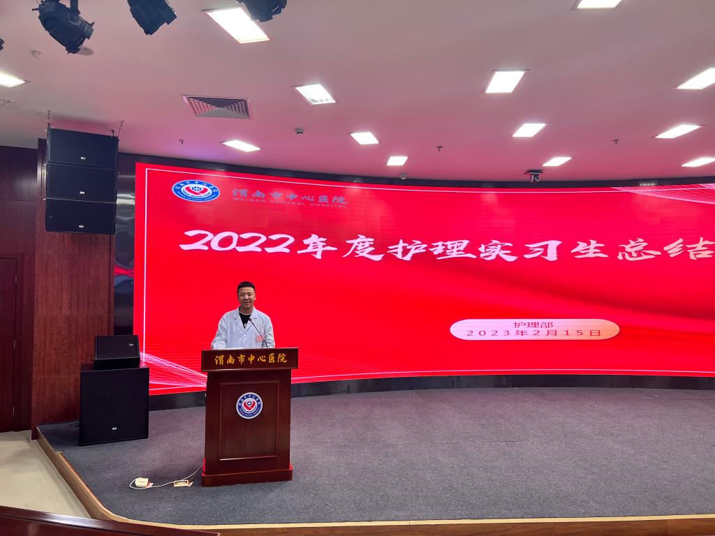 郗旭燕向受表彰优秀带教老师和优秀实习生表示祝贺,对2022年度实习带教工作给予充分肯定。她指出,临床带教是一个教学相长的过程,希望带教老师能够再接再厉,不断提高自身专业能力与素养,为医院护理学科发展培养更多人才。同时对同学们表达期盼与祝福,希望学习发扬渭医精神,以饱满热情投入到未来工作和生活中,创造渭医美好明天。
