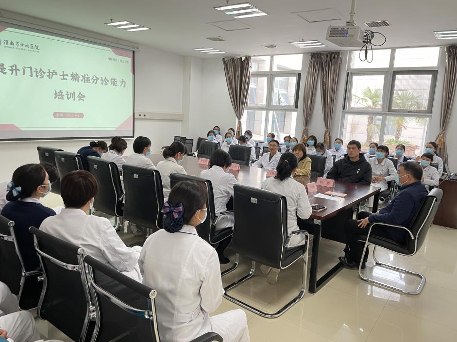 为加强门诊工作人员分诊能力,提升患者就医体验,4月6日下午,门诊部邀请脑血管治疗中心负责人杨震、神经内科副主任医师卫晓红、神经外科副主任医师段吉强对门诊工作人员开展专科分诊培训。会议由门办负责人李卿主持,近40余人参加。