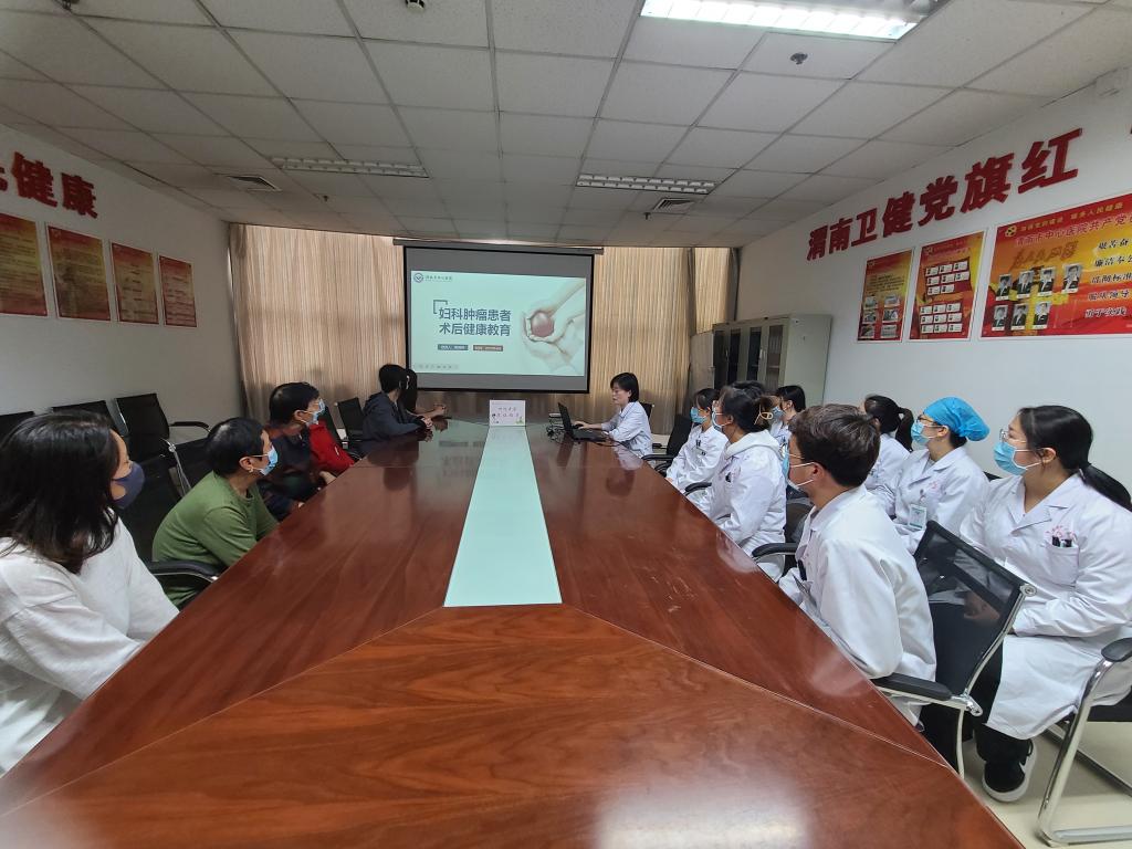 主管护师南晓婷以“妇科肿瘤患者术后健康教育”为题,从术后一般护理、饮食指导、康复锻炼指导等方面进行讲解,用通俗易懂的语言,讲解肿瘤术后相关注意事项,并提出指导性建议。