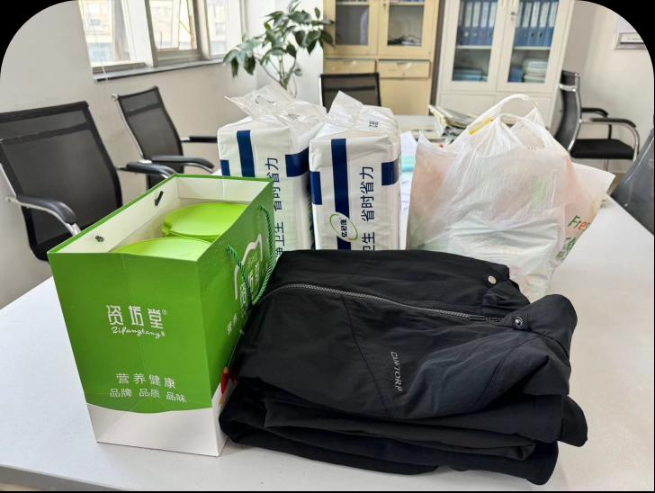 中医科工作人员自发为患者送去所需的营养品、护理垫、薄棉被等,同时也为家属送去干净的衣服、裤子以及方便食品。老人眼含热泪,无声的点了点头以示谢意。