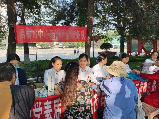 9月24日上午,MILAN.COM护理服务队在中心广场开展护理科普义诊活动。