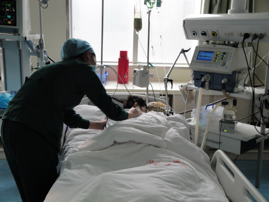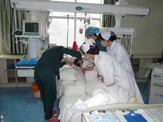 这里躺在病床上的每一位病人都有随时终止生命的可能,胃管、尿管、气管插管、各种引流管,中心静脉留置针、周围静脉留置针、各种穿刺针,所有的都不能意外脱落,否则严重时会危及患者的生命;血糖、血压、血氧饱和度,神志情况、瞳孔大小、体温变化、呼吸节律、都要心中有数,随时上报,严防患者病情突变;患者体位要根据病情安置,及时翻身扣背,每一寸肌肤都不能有丝毫损伤;患者大小便不但要及时清理干净还要观察量、颜色、性状等,并严格记录次数及量,一旦异常及时采取措施;患者药物治疗、物理治疗、护理操作及时有效实施,每一瓶液体、每一片药物、每一次操作都要细致精确,所有的工作都得及时准确记录,密密麻麻的重症监护记录单、繁繁琐锁的数据都不能出现错误,否则必须重新抄录……这只是工作的平常状态,突发情况如新病人到来、病人突发病变需要抢救、突然停电、呼吸机故障等情况更是让你本来忙碌的工作陷入持续奋战的状态…… 每次看到门外日夜守候的家属,每次看到探视时病人与家属稀里哗啦的泪水,每次看到不幸突然降临到微弱的家庭,每次听到他们感谢的话语,你所有的疲惫、所有的痛苦、所有的抱怨、所有的不满便在一瞬间烟硝云散。无论是固有的人性本善、还是固有的同情之心都在督促着你不断地为ICU里的每一个病人耗尽你的精力。日复一日的紧张工作赐予了ICU护士敏锐的洞察力、强大的心理承受力、高强度的劳动能力及无缝隙的团结协作力。