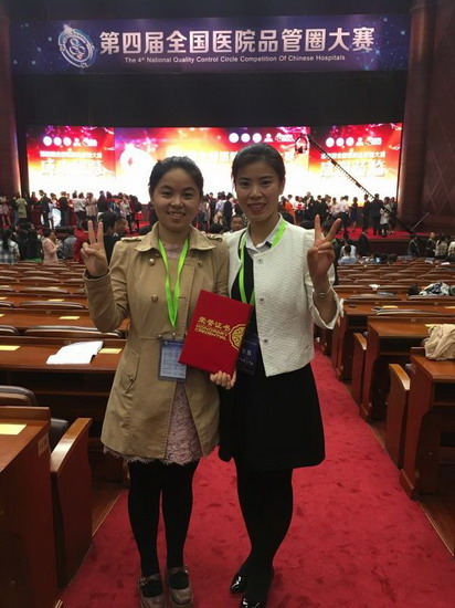 10月21日至23日,由中国医院品管圈联盟、清华大学医院管理研究院主办的第四届全国医院品管圈大赛在成都举办。本次大赛是在全国各赛区预赛的基础上,推选出来自31个省、市、自治区的400个品管圈参加初赛,经过专家评审,275个品管圈入围决赛,其中三级医院护理组共有99圈入围。我院重症医学科的“希望圈”在前期陕西省品管圈预赛中获三等奖,由陕西省推荐参加全国大赛并晋级决赛。李苗护士长和刘阳护士代表圈组进行了现场展示,获三级医院护理组优秀奖。