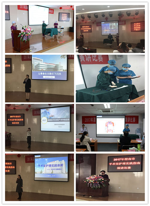 同时,全市手术室护理实践指南演讲比赛也顺利进行。来自全市18家医院的29名手术室护理骨干参加了本次比赛。选手们分别从手术患者安全转运、手术体位摆放、无菌技术等方面对指南进行了讲解。演讲过程中,她们利用多媒体课件、现场演示等教学模式,不仅注重理论的阐述,还兼顾现场互动与演示,围绕所选课题进行了精彩的教学展示。经过一天的激烈角逐和评委们认真严谨、客观公正的评判,最终13名选手脱颖而出,分获本次竞赛特等奖、一等奖、二等奖及三等奖,另外还有16名选手获优秀奖。通过此次演讲比赛,增强了各医院之间的相互交流学习,对«手术室护理实践指南»的进一步落实及我市手术室专业水平的提升,必将起到积极的推进作用。