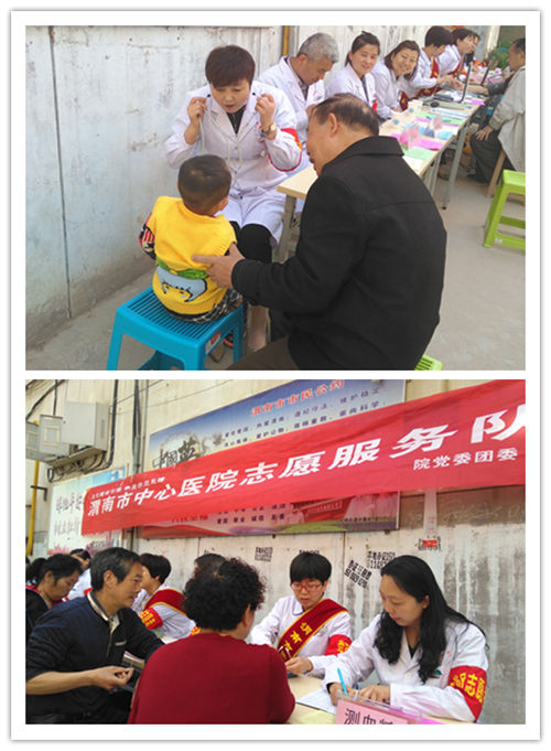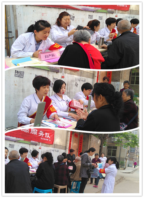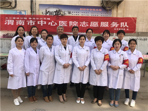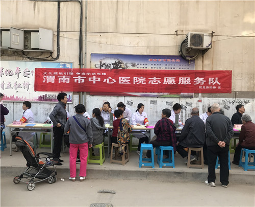 为了不断提高支部党员的党性意识、责任意识和宗旨意识,充分发挥党员的先锋模范作用及医务工作者的服务特色,我院妇产神内新生儿支部、骨科泌外支部、医务医保支部联合组成志愿服务队近20人,于2018年4月17日上午,走进渭南市针织厂家属院,开展了“贴近群众、服务群众、普及健康”为主题的党员活动日志愿服务义诊活动。