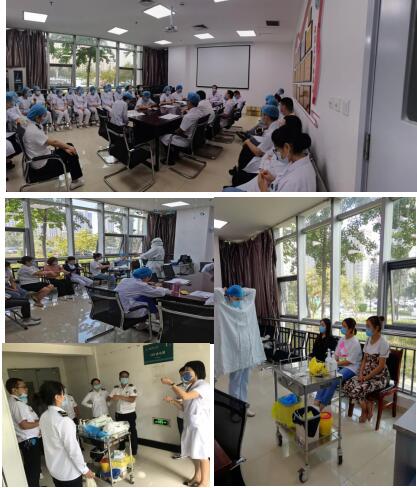 在培训同时,为巩固并强化新冠肺炎防控期间危重伴发热患者救治流程临床规范应用,院前、院内、预检分诊口分组进行多次演练,梳理流程,为联合演练做好准备。