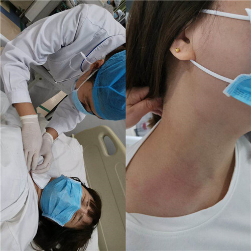 “先不说病人脖子上留置长期导管的异物感和感染风险,我光贴敷贴一个小时,脖子就痒的不行,都红成这样了!”