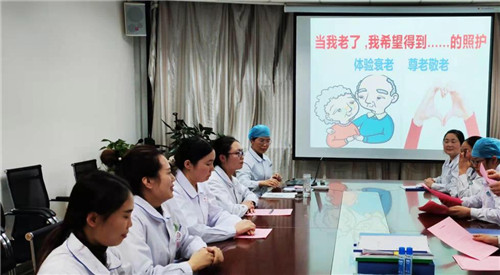 通过一系列活动,大家更深入体会到每位老人的需要,工作中要拟定适合老年人个体的护理计划,采取完善的护理措施,突出老年护理的专业特色,提高其生活质量,敬老爱老,做有温度的护士,让老人们能够舒适、安宁、有尊严地面对余生。