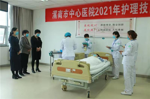 为推动和引导广大护理人员学知识、钻业务、练技术的热情,进一步提高护理人员综合素质,促进护理队伍建设和发展,4月21日、23日,以“立足岗位,锤炼技能,精益求精”为主题的护理技能比武活动在市中心医院如期举行。来自36个护理单元的108名“白衣天使”经过层层选拔参加院级竞赛。党委副书记党继革、主管副院长黄慧玲观摩比赛。竞赛活动由护理部主任高亚梅主持。