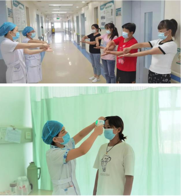 加强病区管理。疫情当前,科内全员不休,加设疫情排查岗。每日对科内疫情相关工作进行地毯式排查和跟踪。病区实行24小时出入管控,全面禁止探视,提倡以视频方式进行网络探视,严格控制陪护人数。科内医护人员严格执行疫情各项防控规章制度,做好患者及陪人身份识别,每日对患者、陪护、工作人员体温进行监测、记录,同时做好科内各项物资准备,做到隔离病房、过渡病房、防护用品卡物一致,班班交接。科内安排专人每日为患者及家属讲解疫情相关防护知识,加强手卫生、正确佩戴口罩、咳嗽礼仪、陪护证管理等,让疫情防控工作落实到细节中。
