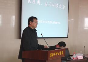 会议特别邀请了省卫计委电子数据中心饶骥总工程师对参会人员进行了《医院用、发卡环境改造》技术培训,从居民健康卡简介、使用居民健康卡及环境改造、发行居民健康卡及环境改造、用卡环境实施要点、省卫计委相关文件五个方面进行了详细的技术指导,重点讲解了用卡环境改造的方法和步骤。