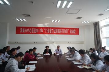 3月7日下午,我院在门诊二楼会议室召开门诊窗口优质服务活动月启动仪式,会议由门诊办公室主任张占安主持。副院长黄慧玲、门诊医技科室相关负责人约40人参加了此次会议。张占安主任对此次活动的工作目标和活动主题做了简要介绍。张主任表示,此次活动的目标是坚持以病人为中心,以问 题为导向,以改善人民群众看病就医感受为出发点,围绕人民群众看病就医反映比较突出的医疗服务问题,大力推进深化改革和改善服务,通过改善环境、优化流程、提升服务、保障安全、强化沟通、建章立制等有效措施,使门诊服务质量在短期内得到明显改善。