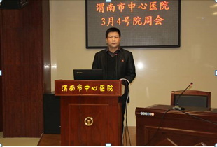 3月4日下午,党办主任谭村岗在院周会上,传达学习全国卫生计生思想政治工作会议精神,各院级领导、全体中层干部及支部书记等100余人参加了会议。