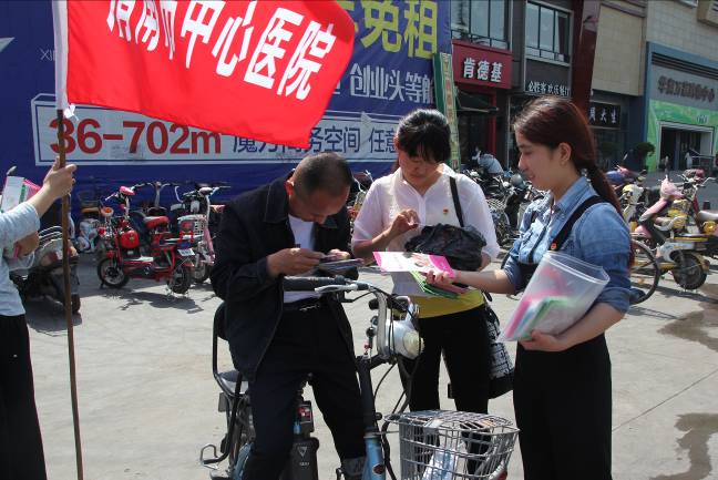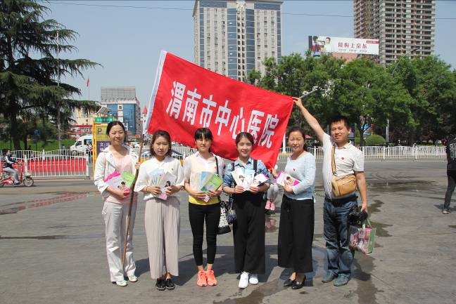 5.4青年节当日上午,市中心医院团委组织全院7名团员代表在市中心广场、华润万家超市门口等地进行了健康知识宣传。