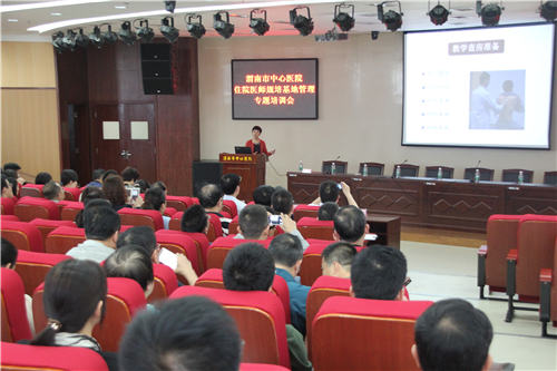 随后,黄慧玲副院长进行“医院感染宣传周”活动动员讲话。会上,我院精心制作的《小苹果版手卫生》舞蹈视频,将手卫生融入到歌舞中,医护人员在医院的各个标志性地点跳起了洗手舞,用耳目一新的方式宣传了手卫生知识,让大家记忆深刻。