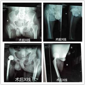 患者雷某,男,67岁,自幼患有右下肢小儿麻痹症,需长期扶拐活动,近日,行走时不慎摔倒,导致右股骨颈骨折,伤后保守治疗5个月仍不能生活自理,前来我院骨二科要求手术治疗。经李玉民主任医师、党熙亮副主任医师反复多次亲自查看病人,考虑到:患者先天发育异常,骨骼发育不良,手术需要使用特殊假体;患者年龄大,且长期缺乏锻炼,骨质疏松严重,术中容易假体周围骨折,术后极易发生髋关节脱位。主治医师与患者及家属沟通后,患者及家属强烈要求手术治疗,骨二科医务人员经过术前精细测量,精心准备,对术中术后可能出现的并发症及风险充分评估后,于7月27日行右侧半髋置换术,手术顺利完成,用时约1小时,术后患者恢复良好,已下床行功能康复锻炼。