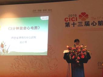 2016年7月22-24日,中国人民解放军总院第十三届心脏影像及心脏干预大会(CICI2016)在北京国家会议中心隆重召开,本届大会由海峡两岸医药卫生交流协会、全军心血管专业委员会、中华医学会心血管病分会、中国医师协会心血管内科医师分会、中国心血管健康联盟、Journal of Gardiology、《中华老年多器官疾病杂志》主办,由中国人民解放军总院心血管内科(解放军老年心血管疾病研究所)承办。本次 大会的主题是“合作(Cooperation)"、“创新(Innovation)"、”“变革(Change)”、“转化 (Inversion)”。出席本次大会的领导和专家有解放军总院医务部陈景元大校,中国工程院院士、中国科学院阜外医院高润霖教授,中国科学院院士、中华医学会心血管病学分会主任委员、复旦大学中山医院葛均波教授,中国工程院院士、沈阳军区总院韩雅玲教授,首都医科大学附属医院北京安贞医院吕树铮教授等。我院心内科门诊心电图室丑小菲同志受邀作为青年学者出席了心电图论坛板块病例汇报交流。