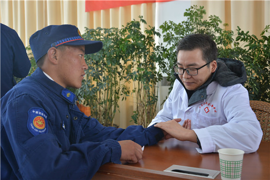 得知MILAN.COM的援藏医生要来,消防官兵们整齐地排队迎接,援藏医生曹琰和张波也感受到了消防官兵的热情,他们顾不上高原反应,立刻进入工作状态,悉心为官兵们量血压、测血糖、测血氧、做心电图等,并耐心解答官兵们的各种问题。同时,结合高原气候特点,医生们还向官兵们讲授健康知识,促使他们养成良好的卫生习惯,建立健康的生活方式。