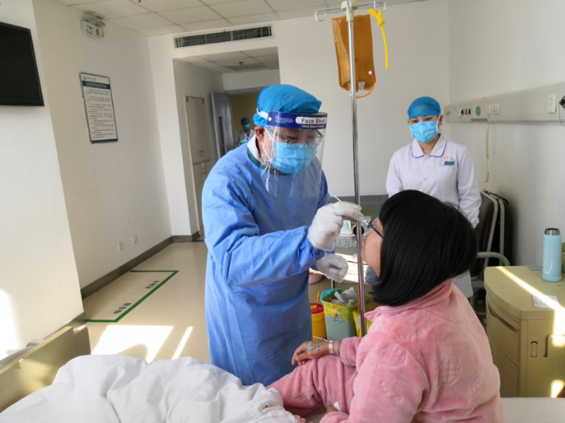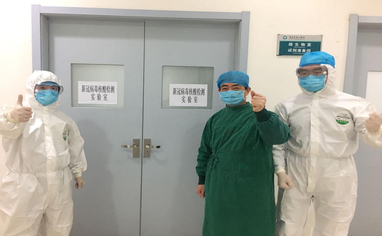 2020年1月下旬,全国新型冠状病毒感染的肺炎疫情防控战打响。1月22日,正值春节前两天当晚,医院收治了第一名疑似病例患者,发热门诊启动。当时已是接近深夜,接到消息后,支部委员、副主任张玲立刻赶到医院与正在值班的免疫组专业组长袁丽侠商讨,对疑似病人进行呼吸道病毒采样检测。党员袁丽侠不怕危险,穿好隔离防护服立即进行采集鼻咽拭子,检验结果全部完成时,已至凌晨。近20多天来,张玲、李龙龙及袁丽侠早已没有春节放假的概念,24小时随时待命,老院区感染实验室、新院区门诊化验室、急诊化验室、新冠发热门诊,张主任一天要跑上几个来回。由于需要在感染发热门诊内部搬迁安装设备,受感染几率十分高,刚刚援西藏回来不到2周的支部委员李龙龙和张玲主任强令不让科里任何同志进入,冒着风险两人到感染病区实验室内部搬迁安装设备,保证新冠感染实验区工作顺利完成。