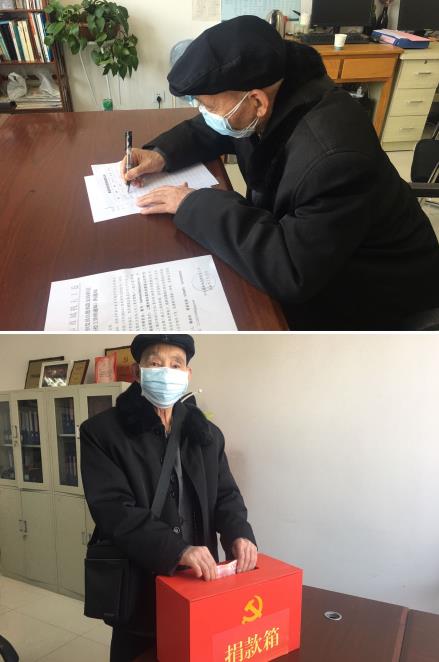 当看到党中央对广大党员发出自愿捐款的号召后,刘志芳、郭西宝两位退休老党员第一时间拨通了院党委办公室的电话要求捐款,次日一大早,两位年过七旬的老同志就来到党办。