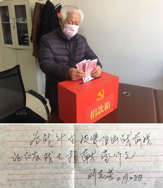 “看到全国疫情防控形势如此严峻,作为一名老党员,一定要响应党中央号召,我捐款1007.1元,“7·1”是党的生日,我想以这种方式表达我对党、对国家的热爱与忠诚,我没有忘记党!”退休党员郭西宝同志说道。