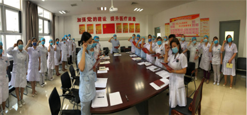 最后,支部书记寄语全体党员,党员代表着组织的形象,肩负着医院的使命,希望大家能够时刻牢记入党誓言,做医院持续发展的先锋,把爱党爱国热情转化为立足岗位、发奋工作的实际行动中。