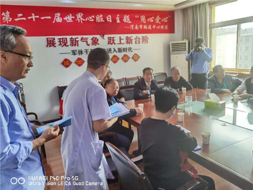 为普及胸痛救治知识,提升群众对胸痛的认知能力,在第21届世界心脏主题日“用心爱心”来临之际,心内呼吸介入支部结合医院“晒比拼超”活动要求,9月23日上午,共产党员、心内科李军农主任一行携带医疗设备,前往渭南市退伍军人休养所进行疾病咨询和健康检查,耐心询问群众身体状况、日常饮食情况及用药方面指导,并进行胸痛知识、心肺复苏培训及科普宣传义诊,受到好评和赞扬。