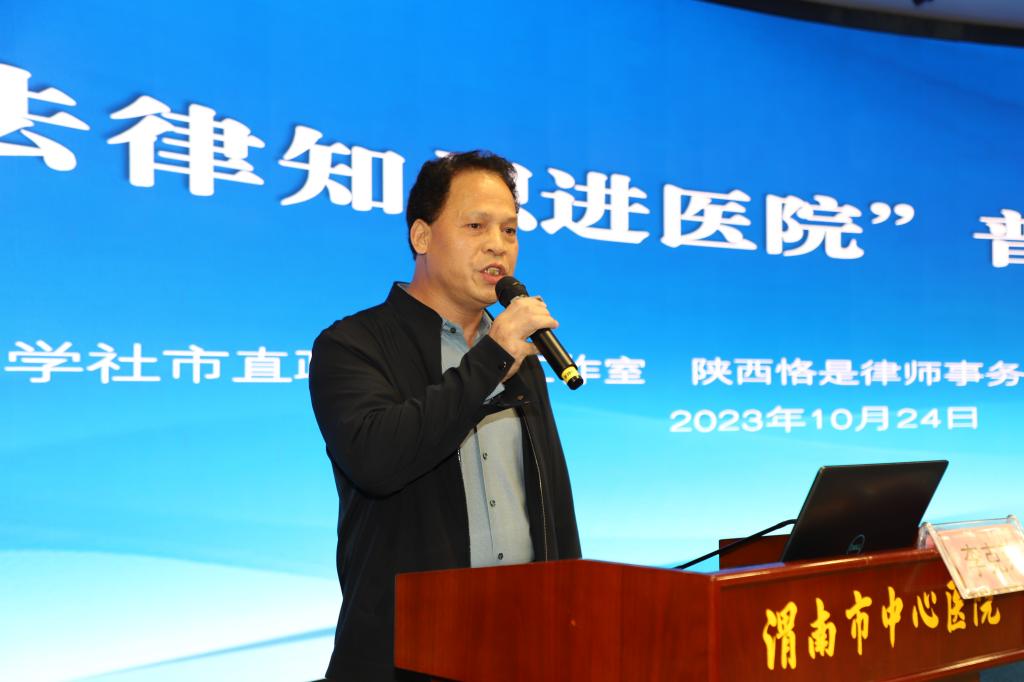 活动伊始,李克荣指出,市中心医院在全市医疗机构中发挥排头兵作用,要通过法治建设提升医院法制治理能力,增强员工遵纪守法意识,规范约束医务人员诊疗行为,为医院高质量发展营造良好法治环境。