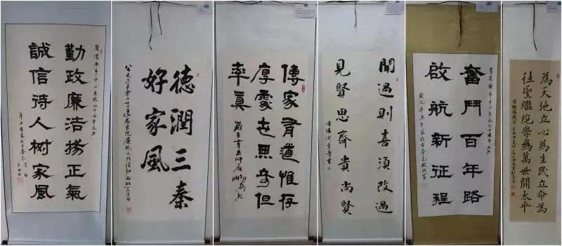 活动中,党员干部学习了习近平总书记《关于注重家庭家教家风建设论述摘编》节选片段,大家深刻理解、掌握家风建设的意义。开展了家风经典作品诵读活动,学习分享了习近平总书记家书,张伯礼、钟南山先进事迹,教育引导党员干部继承发扬光荣传统和优良作风,推动家风建设深入开展。活动征集到来自中书协、渭南书协、退休职工、职工家属的书法作品近三十幅,以传世家规、警世名言、经典楹联为载体,弘扬传统文化,彰显书法魅力,传颂好家风。活动现场,书法爱好者书写了家规、家训。医院党政主要领导书写“渭医清风”“廉洁奉公”书法作品,为主题活动增添了亮点。