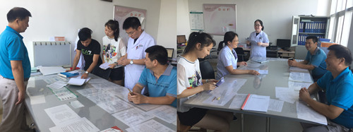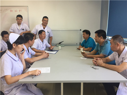 在病房检查过程中,督导组根据排班表,查问医生到岗情况,杜绝医生无故旷工、不在岗情况发生。检查到肿瘤外科二病区时,医生们都在科室忙碌,为患者诊疗,办理住院等。杨斌主任说:“我们医生都在岗,科室积极践行‘改善医疗环境、提高服务质量’的活动要求,医生准时上班已经成为习惯”。姜永红副主任告诉督导组:“以前怕检查,现在怕不查,希望多多来检查,帮助我们提高工作。”