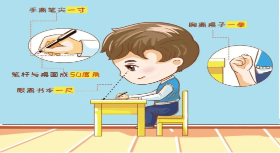 (2)“一寸一尺一拳”,写作业时,眼睛距离书本约一尺(约 30 cm),身体距离书桌约一拳(约 6 cm),握笔手指距离笔尖约一寸(约 3 cm)。